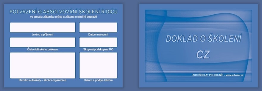 Nabízíme firmám i jednotlivcům možnost tohoto vyškolení ve Vámi stanoveném čase ve Vašich prostorách nebo sídle naší autoškoly. Po ukončení školení je každému účastníkovi vydán průkaz o proškolení, viz níže.