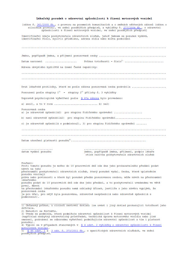• 2.list – „Lékařský posudek o zdravotní způsobilosti k řízení motorových vozidel“, kde to opět bude potvrzeno praktickým lékařem.